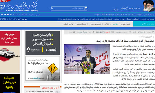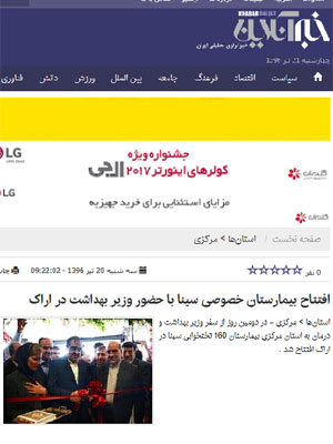 انعـکاس خبـر افتتـاح بیمارستـان فـوق تخصصـی سینا در رسـانه های کــل کشور